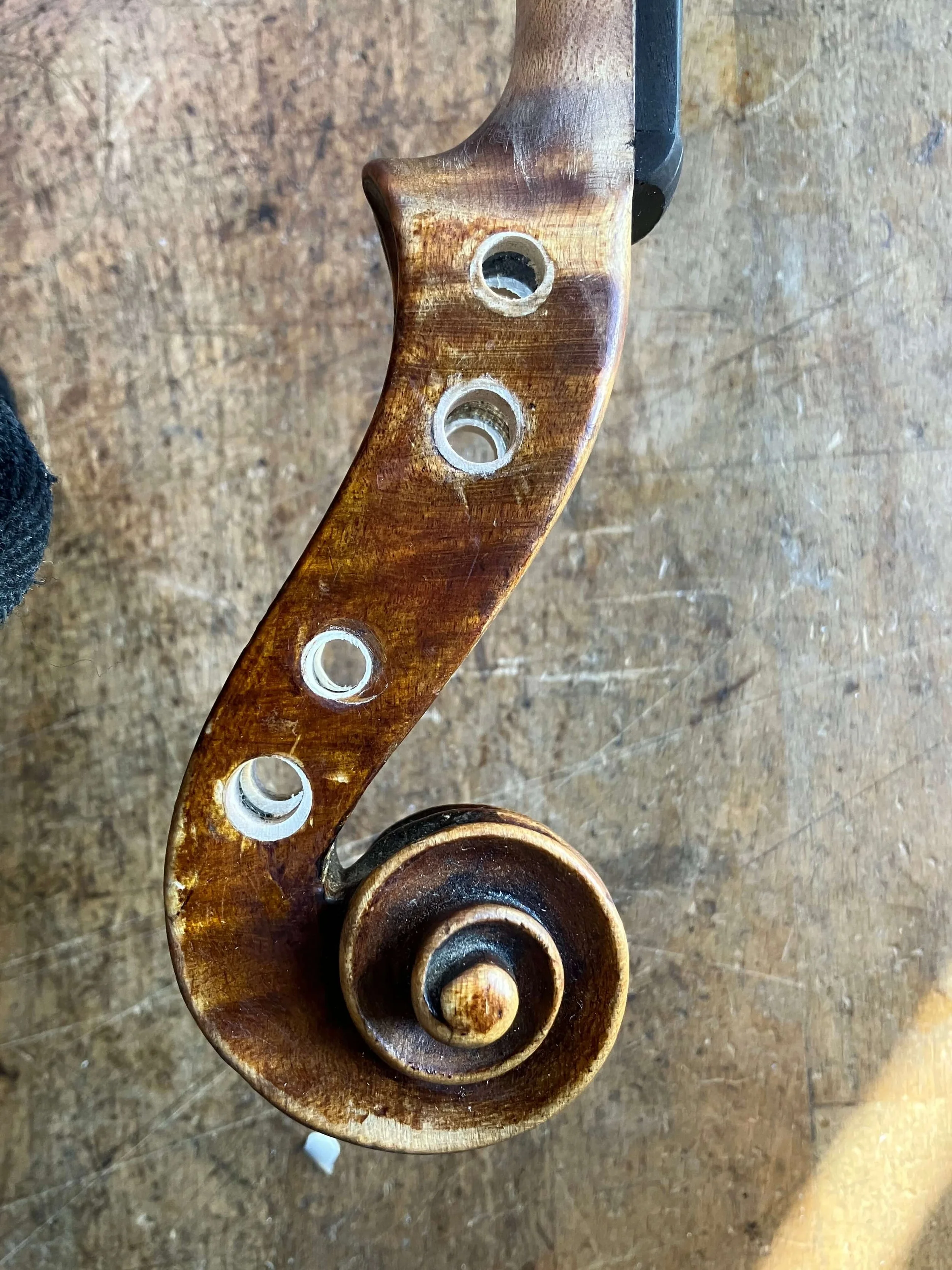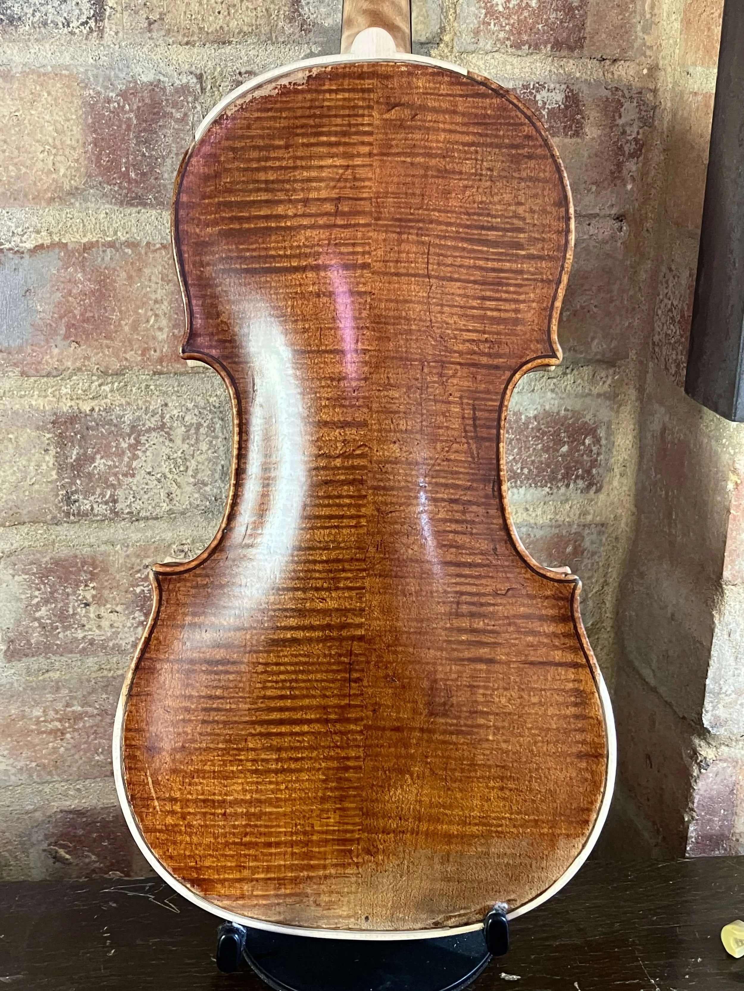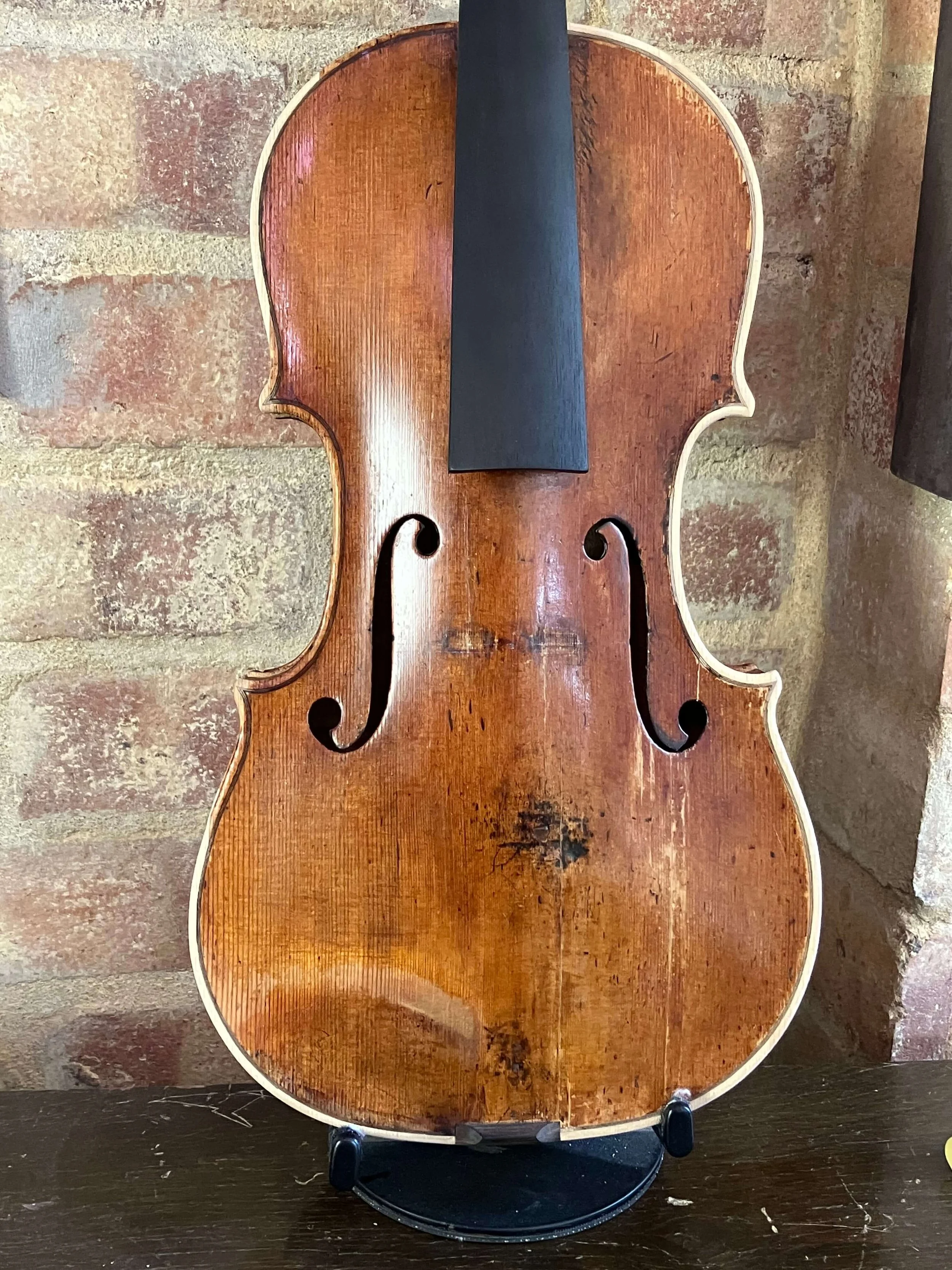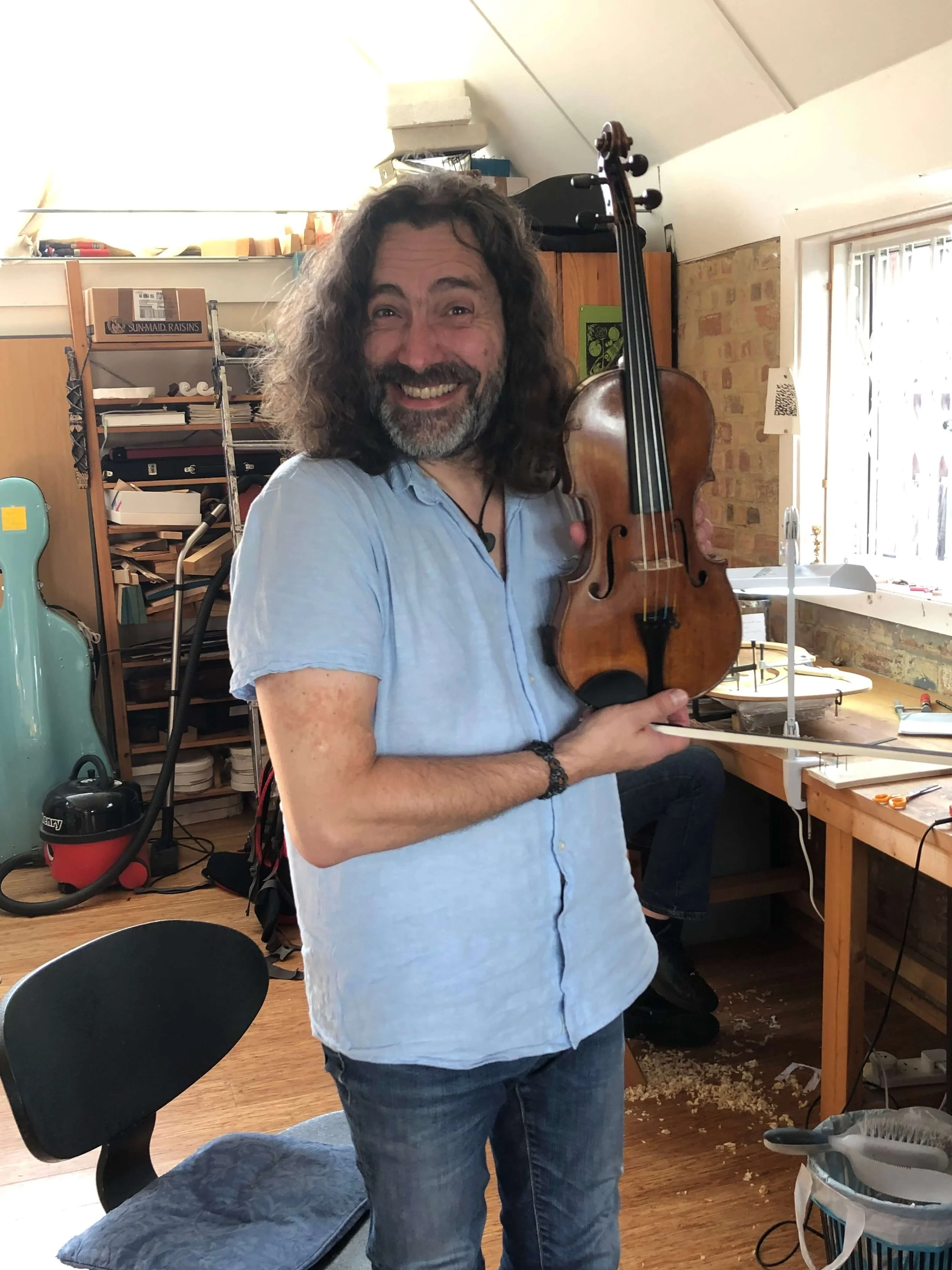 Lev’s violin was always a very frail instrument, and it was shocking, but not entirely surprising when its neck broke. I was writing the book at the time, and Greg generously suggested that I keep the violin in my office while it was out of action. Having it with me was a delight, and it made me able to write about it in a much more detailed and visceral way than I might otherwise have done. Meanwhile, its old, worn-out body proved to be in such a state that at first its repair seemed impossibly complex and expensive. However, so many people were generous enough to respond to the crowdfunding campaign I set up that we were eventually able to give the violin a thorough, full-body restoration.